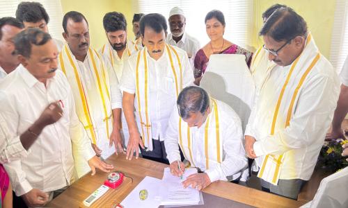 కలం పవర్ న్యూస్ - తెలంగాణ / మహబూబ్ నగర్ : మహబూబ్ నగర్ అర్బన్ డెవలప్మెంట్ అథారిటీ చైర్మన్ గా కె.లక్ష్మణ్ యాదవ్ ముడా కార్యాలయంలో బుధ వారం పదవీ బాధ్యతలు స్వీకరించారు. ఈ సందర్భంగా రాష్ట్ర ఎక్సైజ్, సాంస్కృతిక మరియు టూరిజం శాఖ మంత్రి జూపల్లి కృష్ణారావు, మహబూబ్ నగర్ ఎమ్మెల్యే యెన్నం శ్రీనివాస్ రెడ్డి, దేవరకద్ర ఎమ్మెల్యే జి.మధుసూదన్ రెడ్డి, జడ్చర్ల ఎమ్మెల్యే అనిరుధ్ రెడ్డి,రాజ్యసభ సభ్యులు అనిల్ కుమార్ యాదవ్, మున్సిపల్ చైర్మన్ ఆనంద్ గౌడ్, వైస్ చైర్మన్ షబ్బీర్ అహ్మద్, మైనారిటీ ఫైనాన్స్ కార్పోరేషన్ చైర్మన్ ఓబేదుల్లా కొత్వాల్, టి పిసిసి ప్రదాన కార్యదర్శి వినోద్ కుమార్, మహబూబ్ నగర్ మున్సిపల్ కౌన్సిలర్లు, మార్కెట్ కమిటీ చైర్మన్ బెక్కెరి అనిత మధుసూదన్ రెడ్డి, వైస్ చైర్మన్ పెద్ద విజయ్ కుమార్ తదితరులు ముడా చైర్మన్ కు శుభాకాంక్షలు తెలియజేశారు. ఈ కార్యక్రమంలో మున్సిపల్ కౌన్సిలర్లు , ముఖ్య నాయకులు కార్యకర్తలు పాల్గొన్నారు.