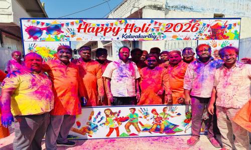 కలం పవర్ న్యూస్ - తెలంగాణ / కల్వకుర్తి : కల్వకుర్తి, మార్చి 4 ( కలం పవర్ న్యూస్ బ్యూరో ) కల్వకుర్తి పట్టణంలోని శ్రీ వాసవి కన్యకా పరమేశ్వరి దేవి టెంపుల్ ప్రాంగణంలో హోలీ పండుగను అంగరంగ వైభవంగా, అత్యంత ఆనందోత్సాహాల మధ్య ఘనంగా జరుపుకున్నారు. ఆర్యవైశ్య మహాసభతో పాటు వాసవి క్లబ్, వాసవి వనిత క్లబ్ ఆధ్వర్యంలో నిర్వహించిన ఈ కార్యక్రమంలో ఆర్యవైశ్య సభ్యులు, మహిళలు, యువత పెద్ద సంఖ్యలో పాల్గొన్నారు. ఐక్యతకు ప్రతీకగా ఒకే వేదికపై చేరి రంగులతో పరస్పరం అభినందించుకుంటూ హోలీ సంబరాలను ఉత్సాహంగా నిర్వహించారు. ఈ వేడుకకు ముఖ్య అతిథిగా జూలూరి రమేష్ బాబు (ఇంటర్నేషనల్ సర్వీసెస్ సెక్రటరీ) హాజరై కార్యక్రమానికి మరింత శోభాయమానత తీసుకొచ్చారు. ఆయన సమక్షంలో జరిగిన ఈ వేడుక పాల్గొన్నవారికి మరపురాని అనుభూతిగా నిలిచింది. రంగుల హోలీ ఆనందాలు ప్రతి ఇంట సంతోషాలు, శాంతి, ఐశ్వర్యాలు నింపాలని నిర్వాహకులు ఆకాంక్షించారు. సమాజంలో ఐక్యత, సోదరభావం పెంపొందించే దిశగా ఇలాంటి కార్యక్రమాలు దోహదపడతాయని పేర్కొన్నారు.
